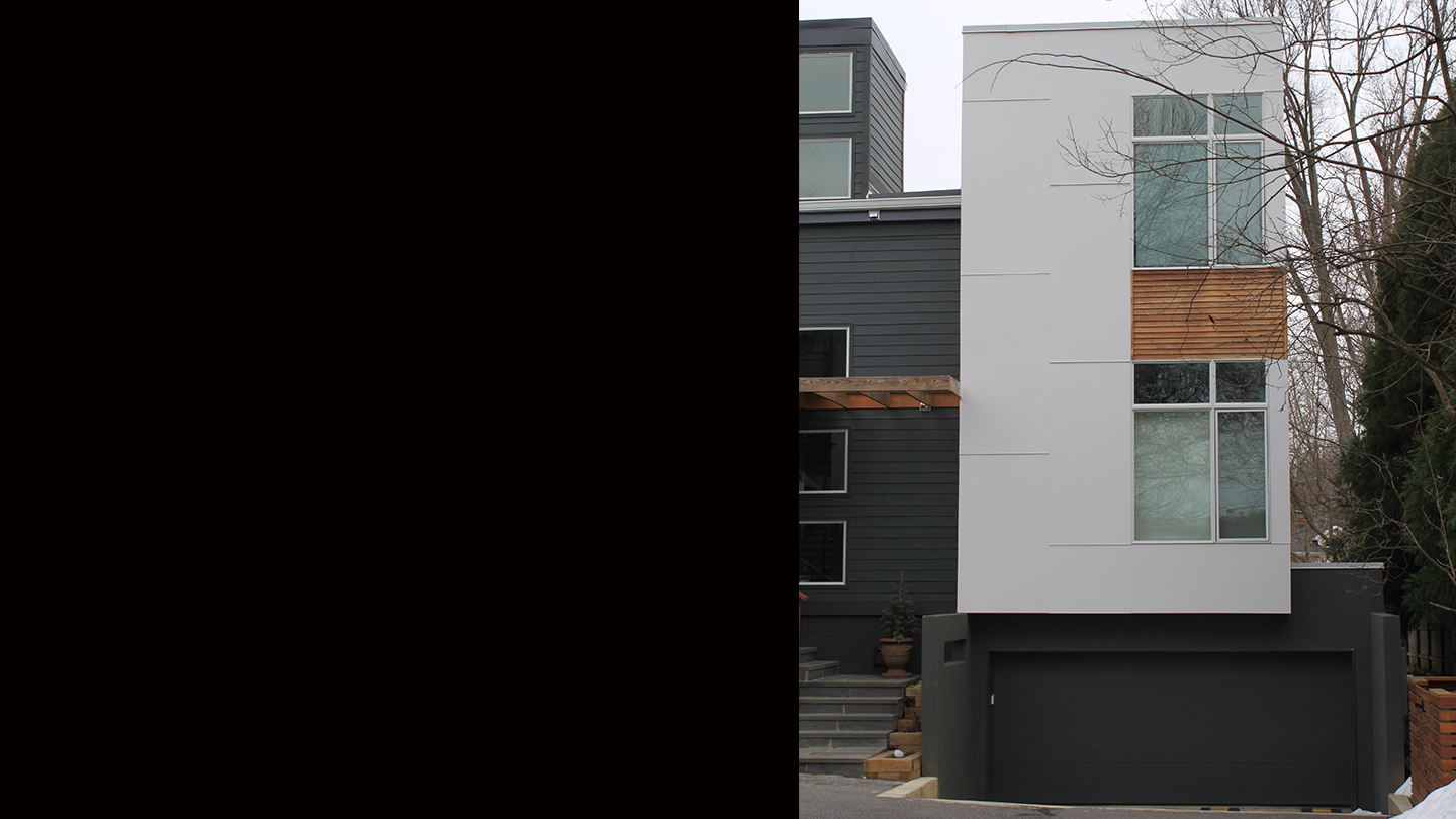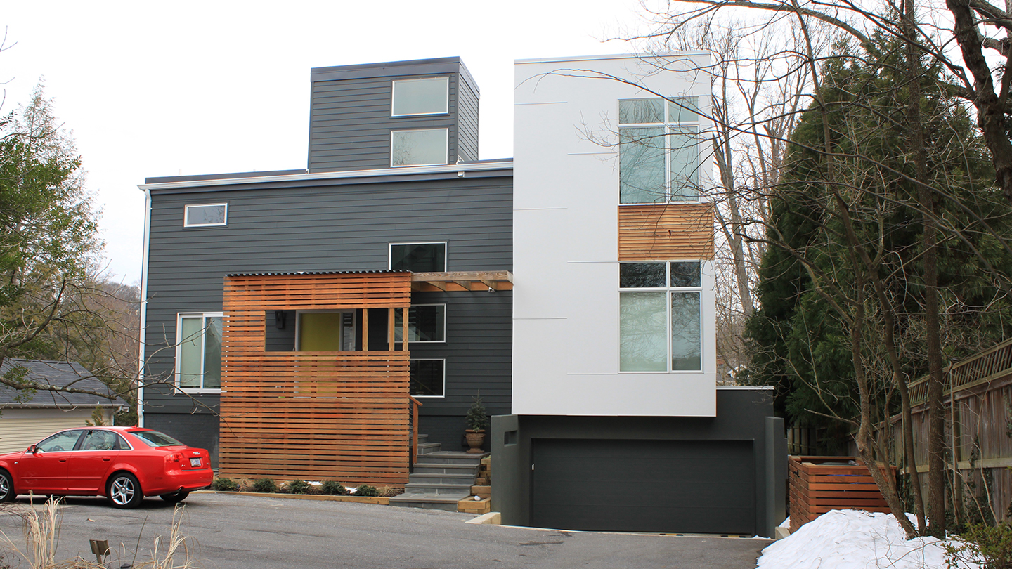 Cubos de distintos colores, profundidades y texturas crean articulación en la fachada; pantallas de machimbre de cedro crean privacidad en los espacios exteriores.
