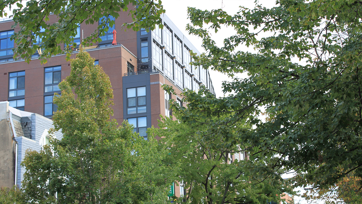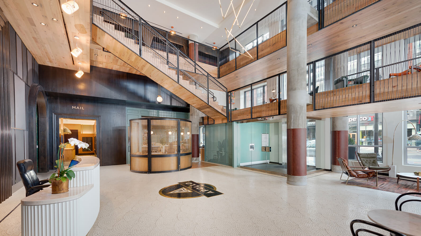 La sólida base se relaciona a la escala baja de la avenida, mientras que el metal y el vidrio articulan remates, retiros, equinas chanfleadas y una torre de mitad de cuadra que da identidad al proyecto y realza la cuadra.
