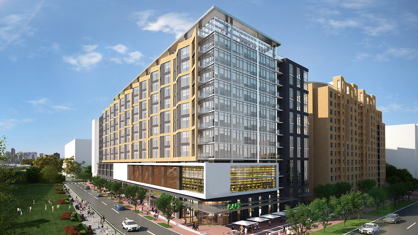 Este edificio de 300 unidades propone una volumetrÃa simple y quebrada enfrentada a la autopista 295 en el distrito del Navy Yard. El edificio esta articulado por distintos componentes que expresan su función: zócalo comercial, amenities- garage, fachada zigzagueante de unidades, proyección de vidrio y elemento de ladrillo oscuro hacia la fase 1.