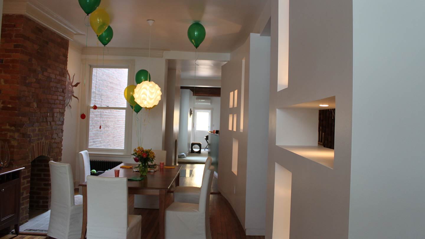 El principal objetivo de esta renovación fue abrir el espacio en el nivel principal. Para lograr amplitud pero definiendo espacios al mismo tiempo, se planteó una pared curva como organizador del espacio y generador de la geometrÃa de la planta.