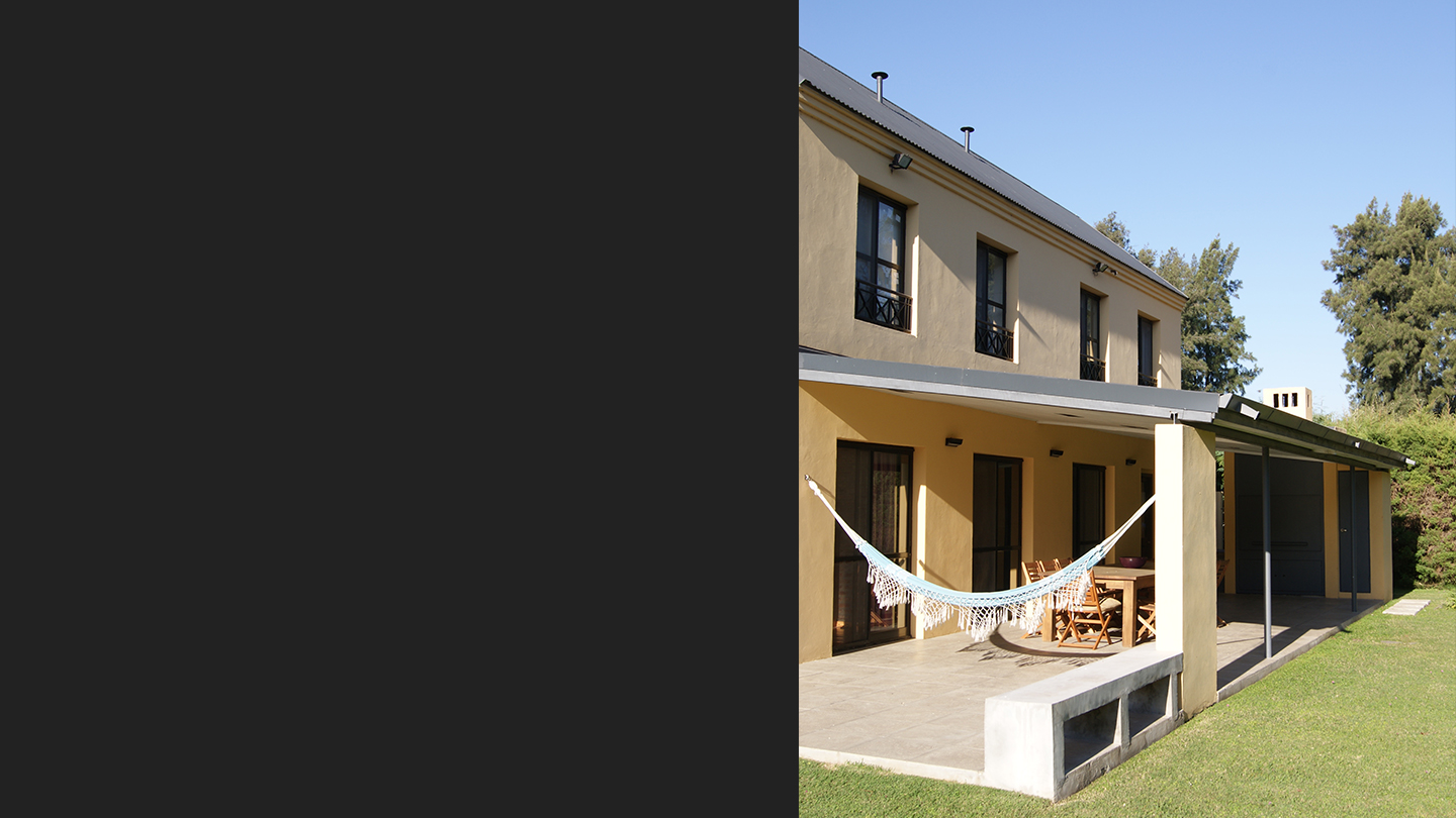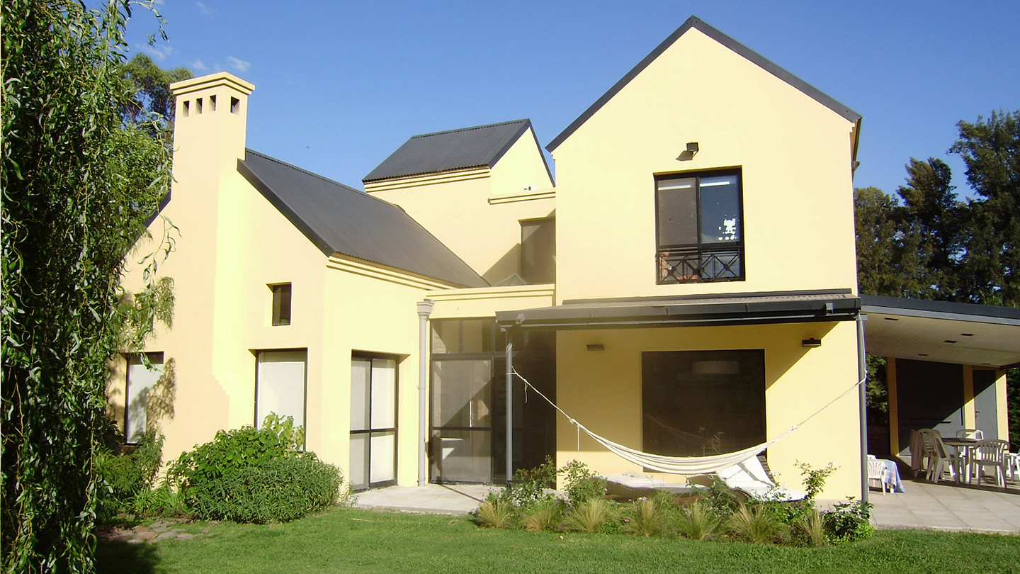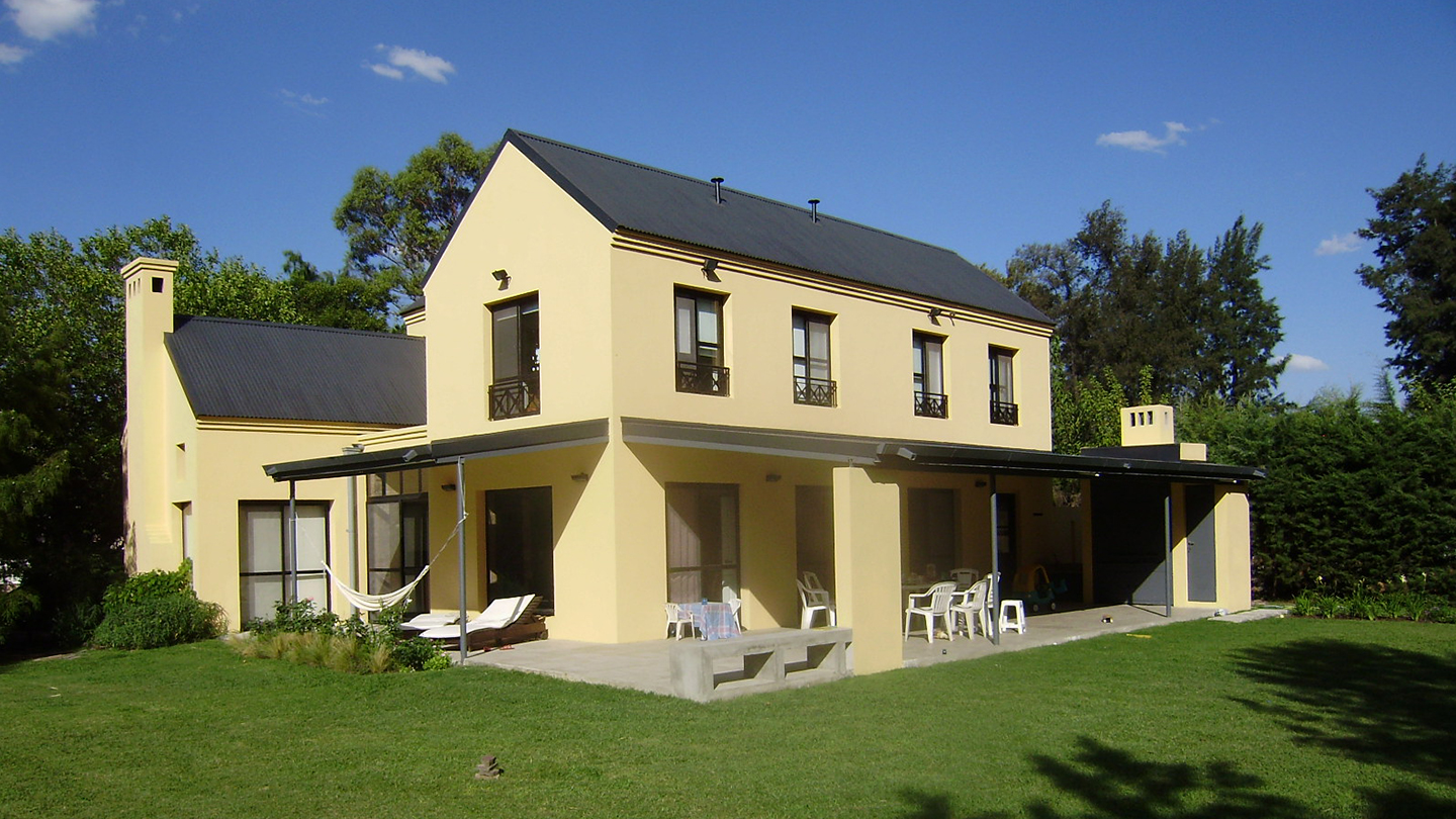 La arquitectura refiere a lo tradicional, pero esta materializada con superficies y lÃneas simples en revoque texturado.