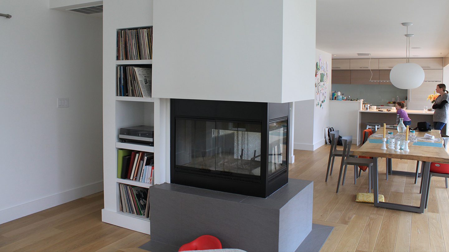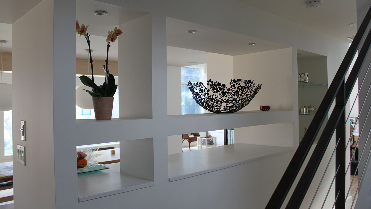 Este proyecto propone una renovación total y adición de una casa poco articulada de los 70. La adición agrega un garage, un estar y un dormitorio principal en tres pisos de mayor altura que los existentes para ampliar el espacio. En el piso de recepción una pared perforada define la circulación, el espacio es abierto e integrado hacia las vistas del fondo.
