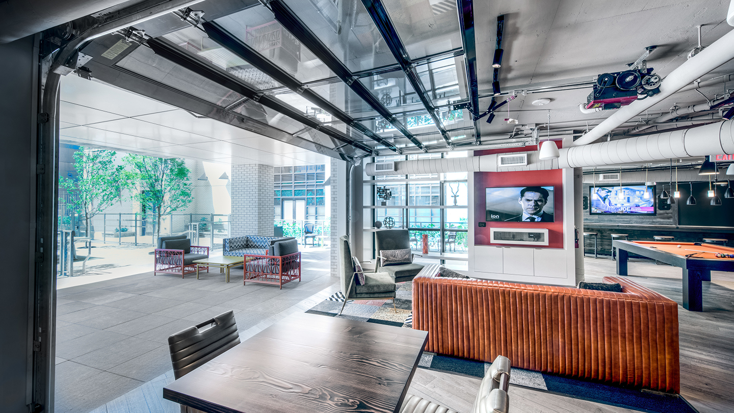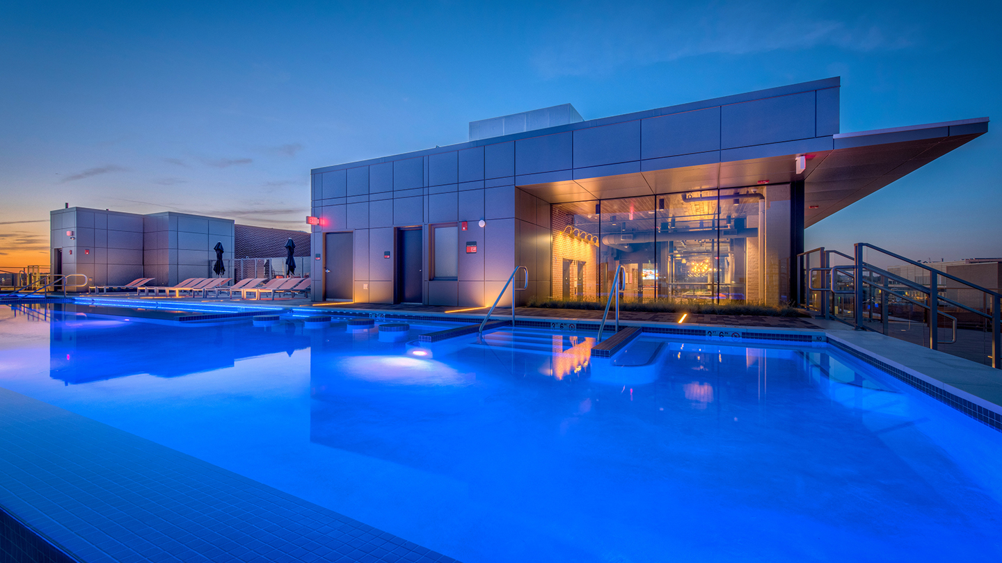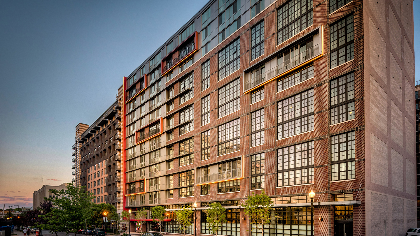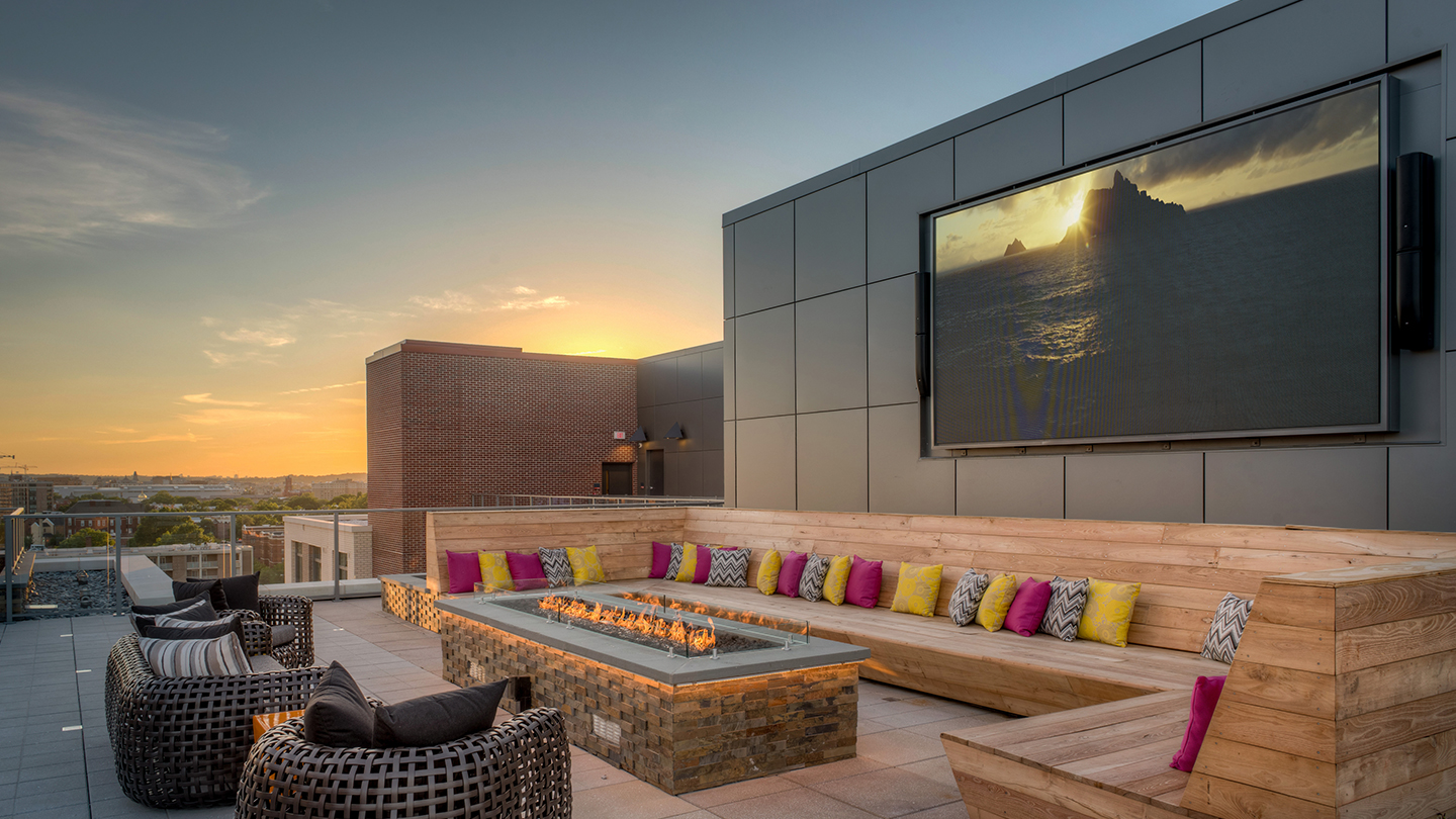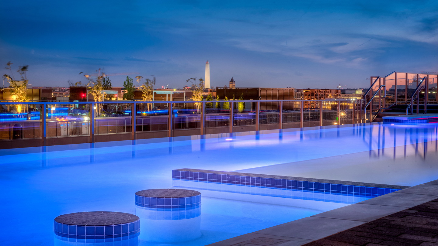 Ubicado en un área de rápida renovación urbana NOMA, este edificio de 13 pisos y 438 unidades que completa la manzana, contiene una gran área de espacios comunes: una incubadora de restaurantes conectada al lobby residencial, un patio privado y una terraza con piscina y mirador hacia el Mall de Washington DC.