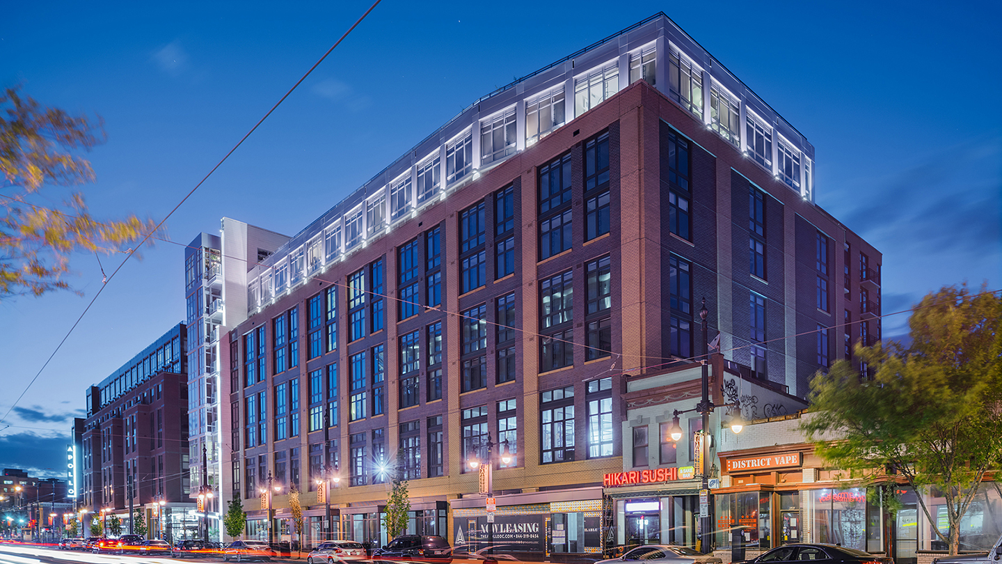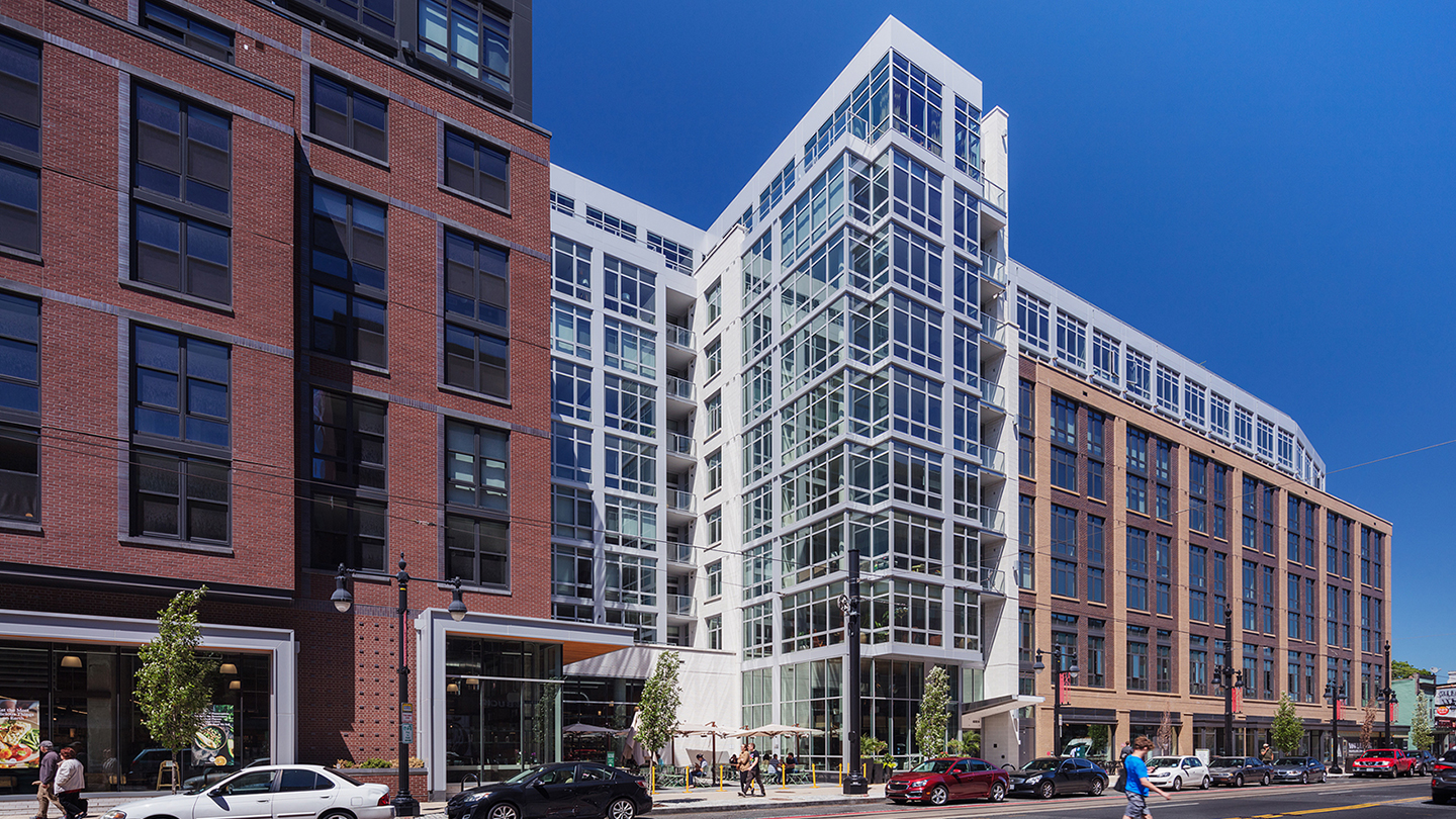La sólida base se relaciona a la escala baja de la avenida, mientras que el metal y el vidrio articulan remates, retiros, equinas chanfleadas y una torre de mitad de cuadra que da identidad al proyecto y realza la cuadra.