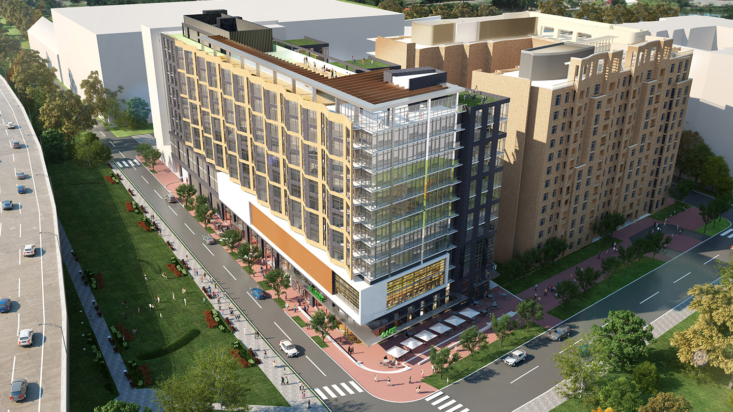 Este edificio de 300 unidades propone una volumetrÃa simple y quebrada enfrentada a la autopista 295 en el distrito del Navy Yard. El edificio esta articulado por distintos componentes que expresan su función: zócalo comercial, amenities- garage, fachada zigzagueante de unidades, proyección de vidrio y elemento de ladrillo oscuro hacia la fase 1.