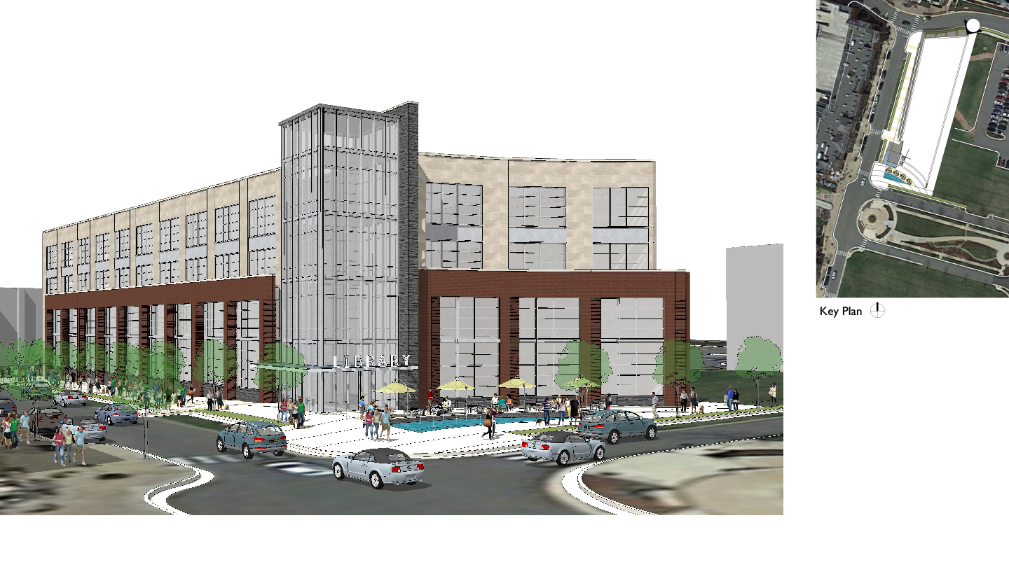 La propuesta de espacio urbano determina la geometrÃa de la arquitectura creando una plaza publica semicircular de acceso en la rotonda principal de la urbanización. El edificio lineal contiene una biblioteca publica en el piso inferior y un espacio de oficinas en el piso superior. Un elemento vertical da la identidad cÃvica al conjunto y articula la entrada.