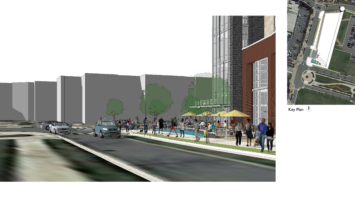 Esta biblioteca esta ubicada en el centro geográfico de un centro urbano.