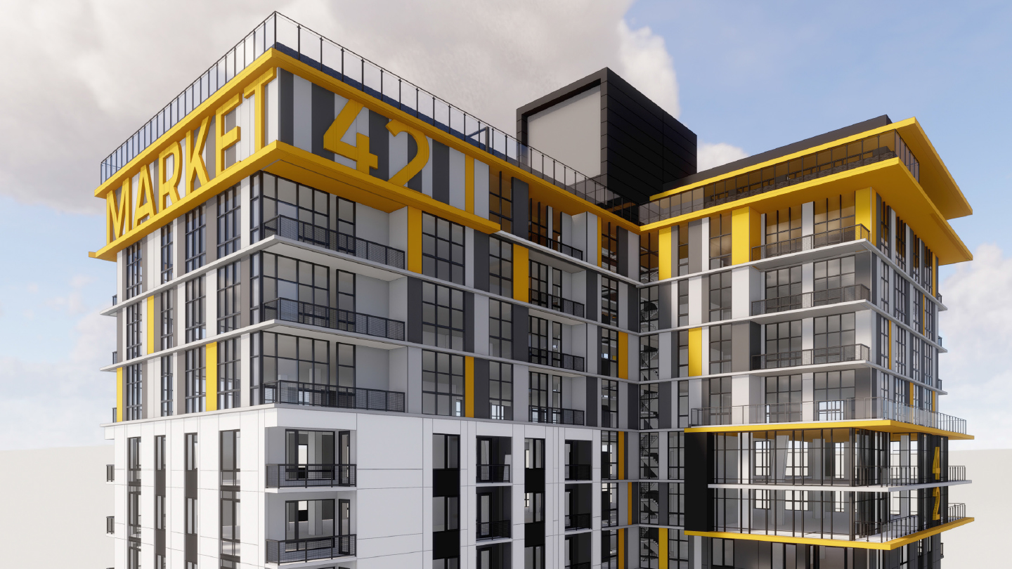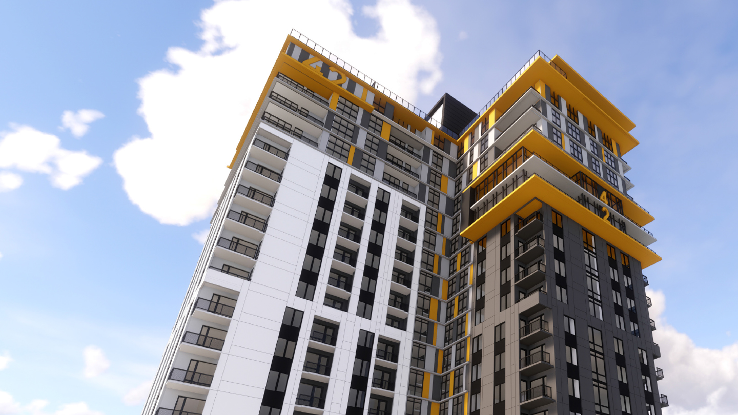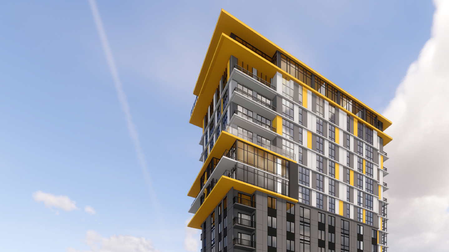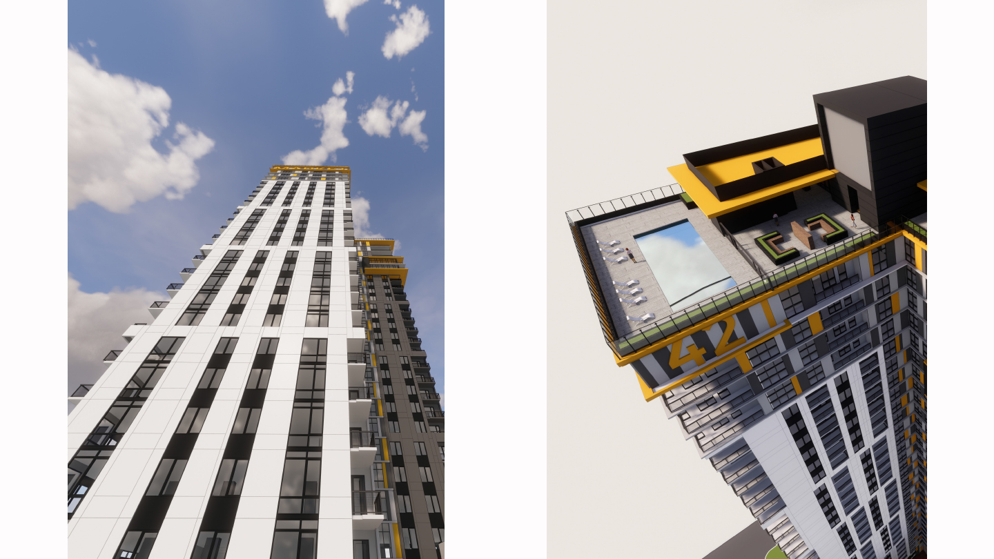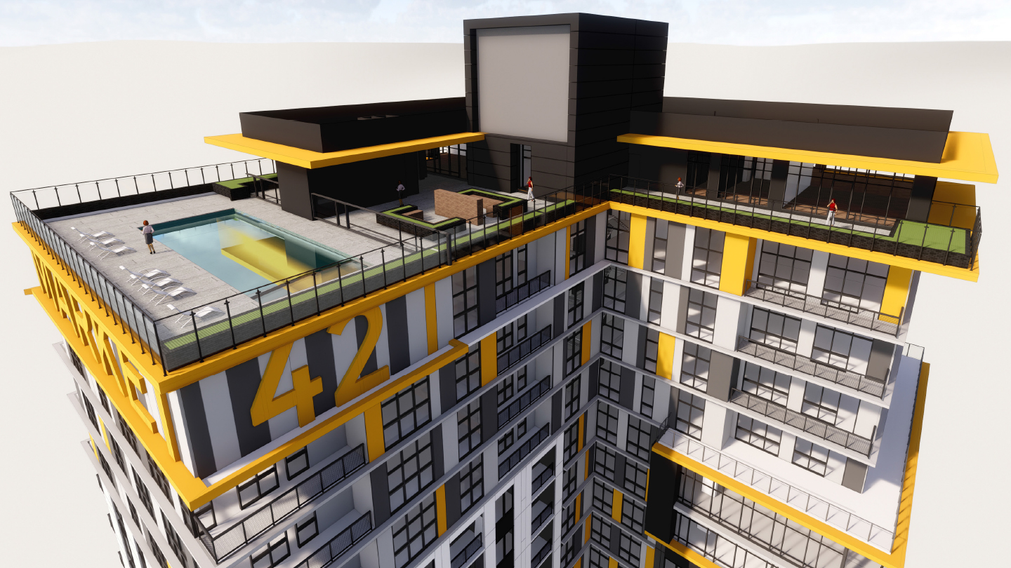Este proyecto de 550 unidades y usos mixtos ocupara una manzana frente a la nueva lÃnea de tranvÃa adyacente al campus de la Universidad de Carolina del Norte en el centro de Charlotte. Es un proyecto de múltiples componentes: un garaje para 900 autos, un edificio residencial de 7 pisos, un edificio residencial de 33 pisos y un edificio de oficinas de 10 pisos. Hacia el sur, el podio comercial esta orientado hacia la calle privada-peatonal paralela al tranvÃa y su nueva estación. Vidrio y una fuerte banda horizontal separan la base y el edificio residencial. Una abertura con un Paseo divide la cuadra, conecta la calle con el garaje y crea un contrapunto con el volumen vidriado de las zonas comunes. El edificio residencial desarrolla un volumen en forma de “E†con patios abiertos al sol y las vistas. Las fachadas están articuladas con volúmenes contrastantes claros y oscuros, y acentos de color alternados. Hacia el norte, el edificio alto es una extrusión en forma de “Lâ€, la arquitectura celebra la volumetrÃa acentuando la diferencia entre las alas y el centro del edificio. Las alas tienen una expresión monocromática, sólida y vertical, mientras que el centro se expresa horizontal y con patrones mas vibrantes y coloridos. Fuertes voladizos de color y grafica de gran escala, acentúan las áreas de usos comunes en la base, desarrollo y remate del edificio, definiendo la futura identidad del edificio en la silueta urbana. Diseñado para KTGY Group